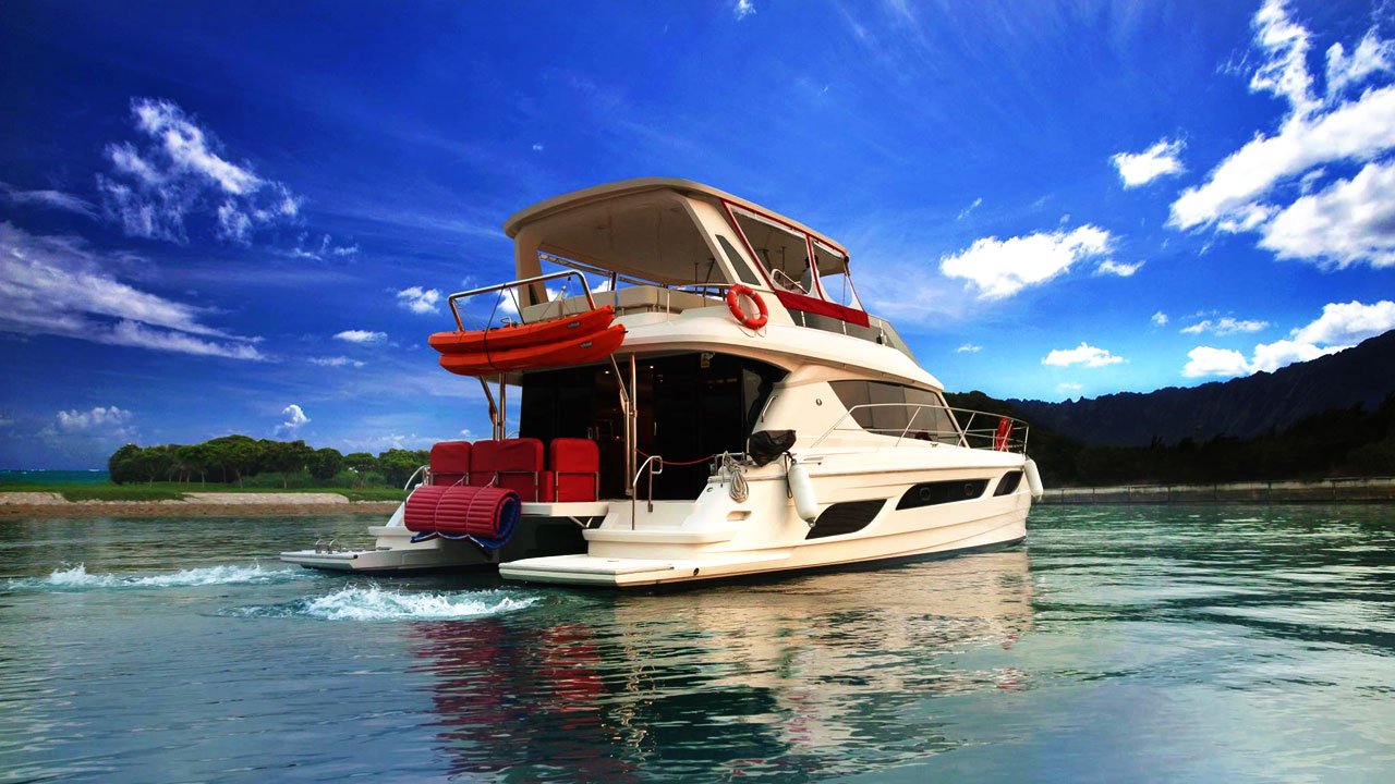 The main deck offers extended spaces for living large, with beautiful panoramic views and access to both forward and aft covered cockpit seating areas. Inside, comfortable saloon seating ensures leisurely dining and entertainment. The galley is ergonomically designed with the most modern of appliances, and all the cabins are well lit thanks to their panoramic windows and offer spacious en-suite bathrooms and showers stalls.