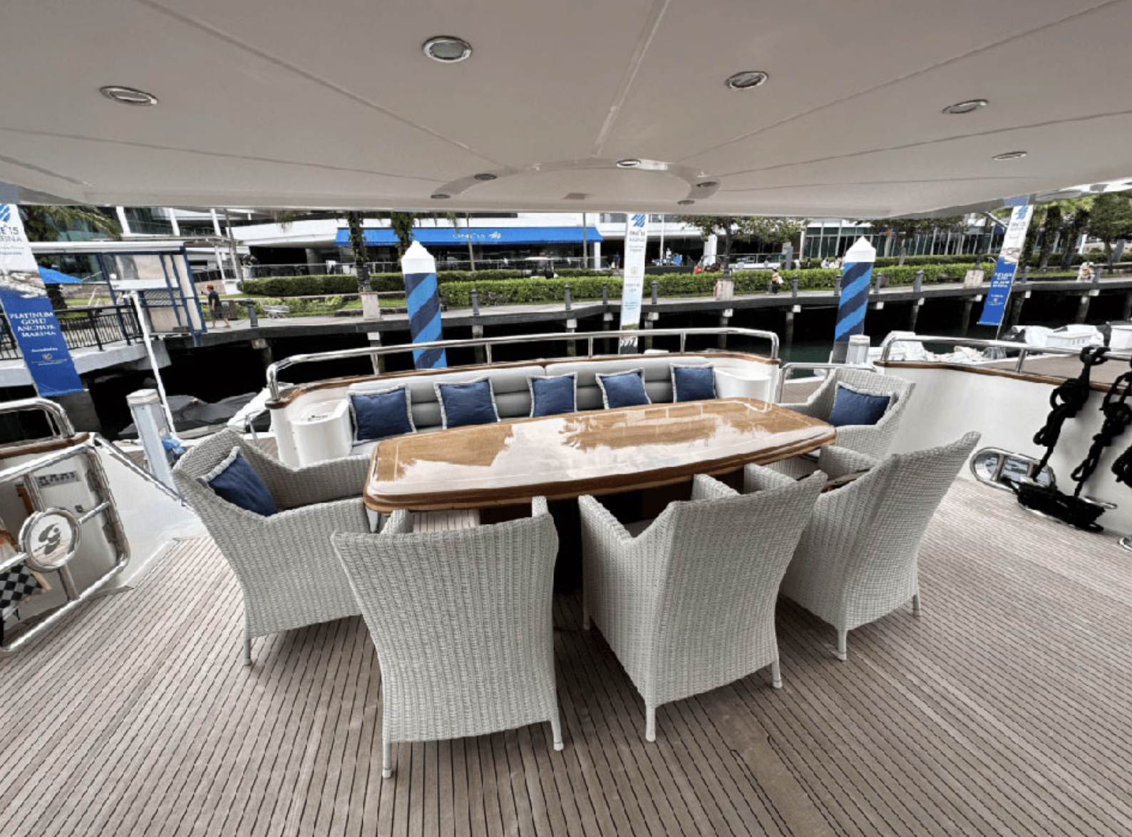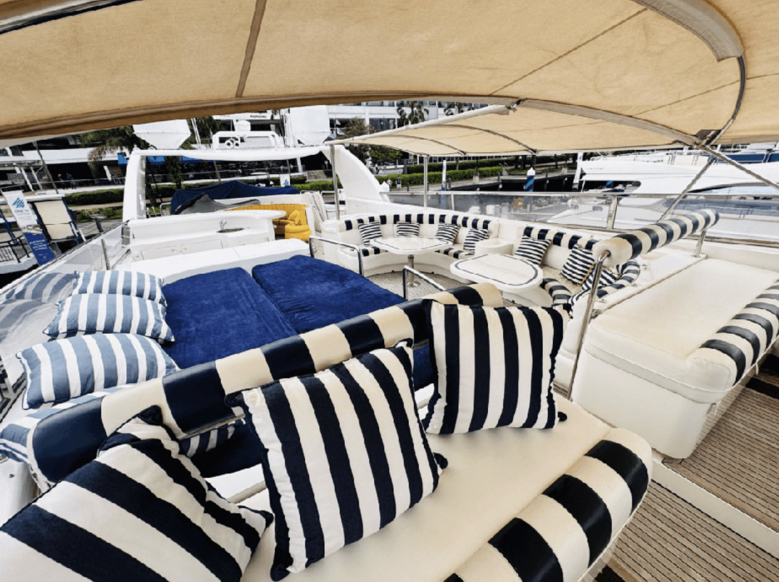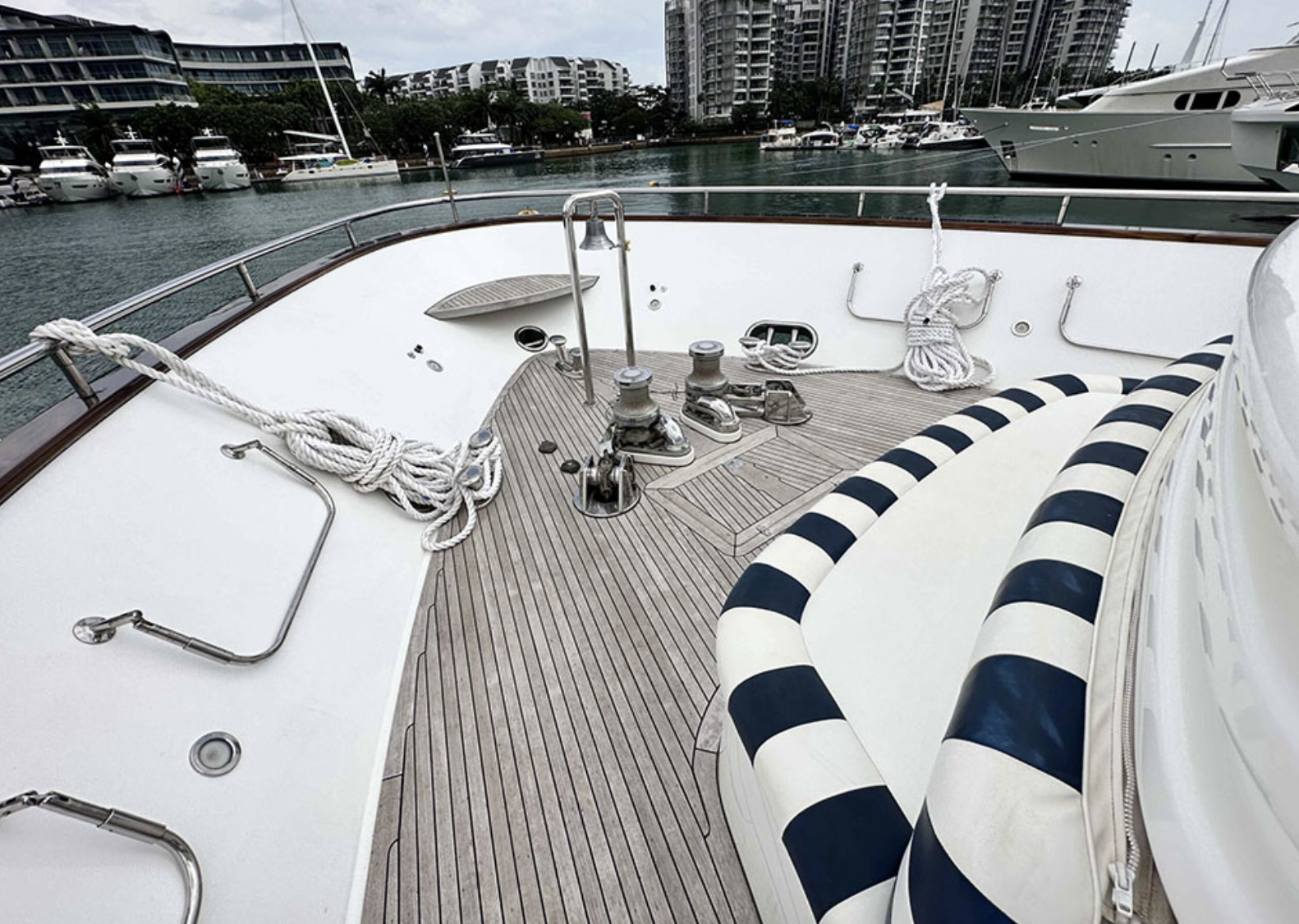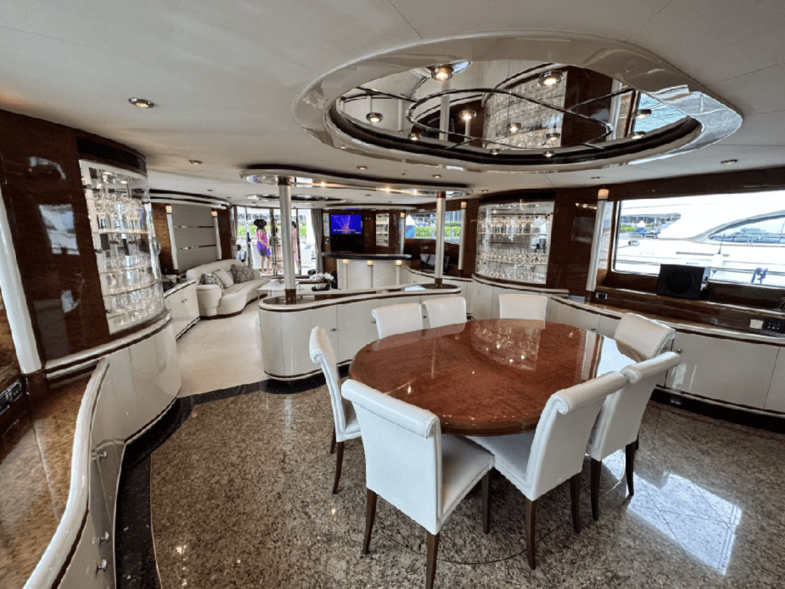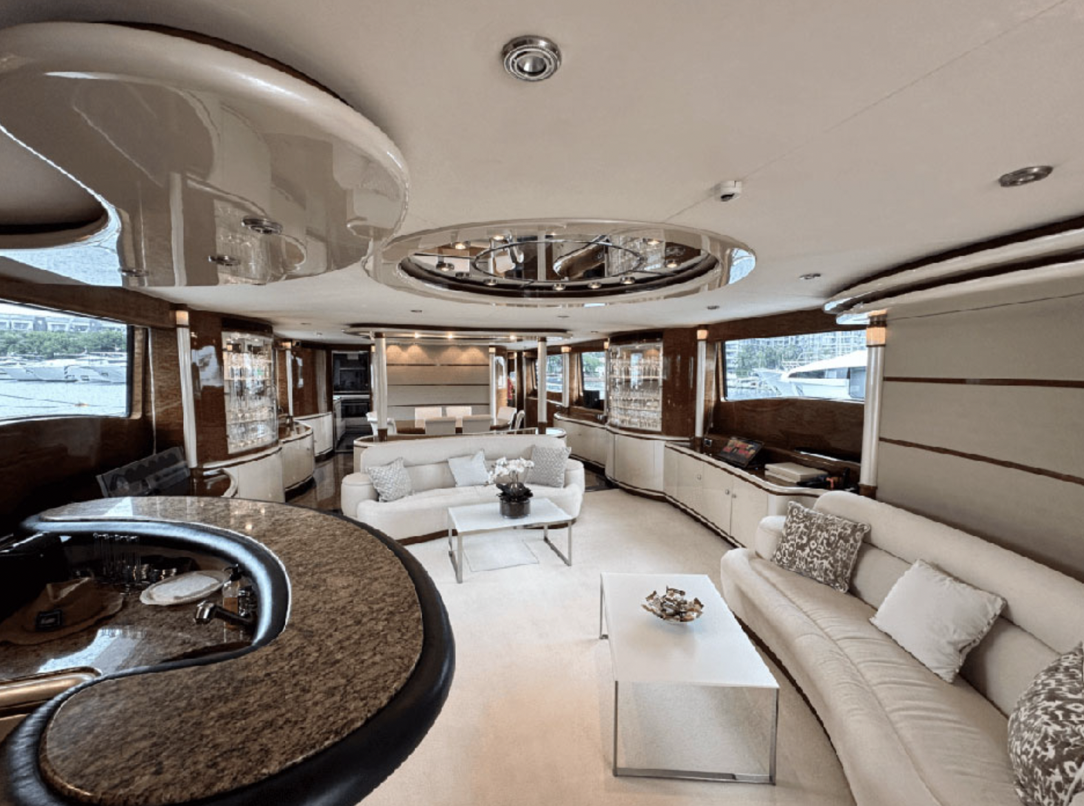 Leviathan 8 yacht, is a 105ft yacht boasting a very spacious flybridge to soak up the sun, dip in the Jacuzzi, or sit and enjoy the views under the shade. Filled with toys, Top quality service provided by her highly-praised and professional crew. Leviathan 8 offers accommodation for up to nine guests in five staterooms. The master stateroom is located forward on the main deck and a curved staircase takes you down to the vanity and large en suite bathroom featuring a Jacuzzi tub and shower