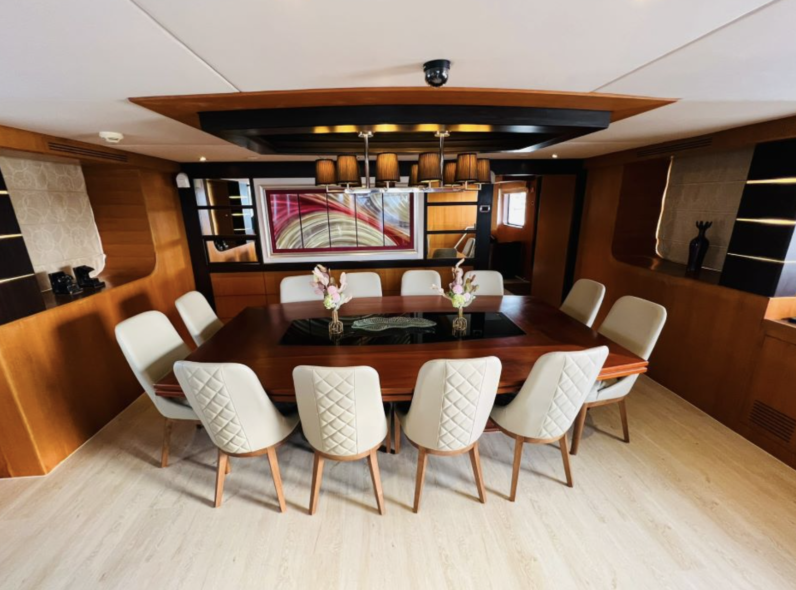 ‘Star of the Sea’ is the largest (128ft) and possibly the most luxurious superyacht available for charter in Singapore. It is the largest yacht built locally in Singapore in 2012 with the Singapore ethos of high quality and reliability. Relaunched and newly renovated in 2023, the ‘STAR of the Sea’ is furnished with the latest designer furniture, sound systems and powered by twin MTU engines by Rolls Royce.